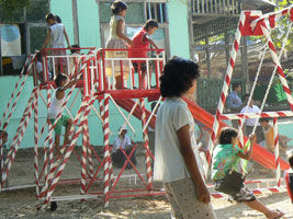 A poor community located in the center of Yangon is filled with children and no safe place to play. We met with the local government and they agreed to provide land for a park. We designed the park and worked with a local fabricator. 90 days later the park was opened and everyday it is filled with children from daylight to nightfall.